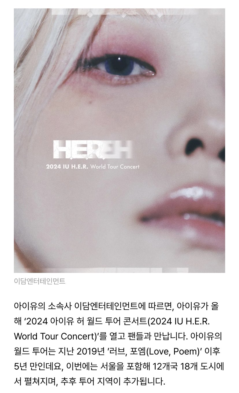 IU unveils 2024 ‘H.E.R.’ world tour dates
